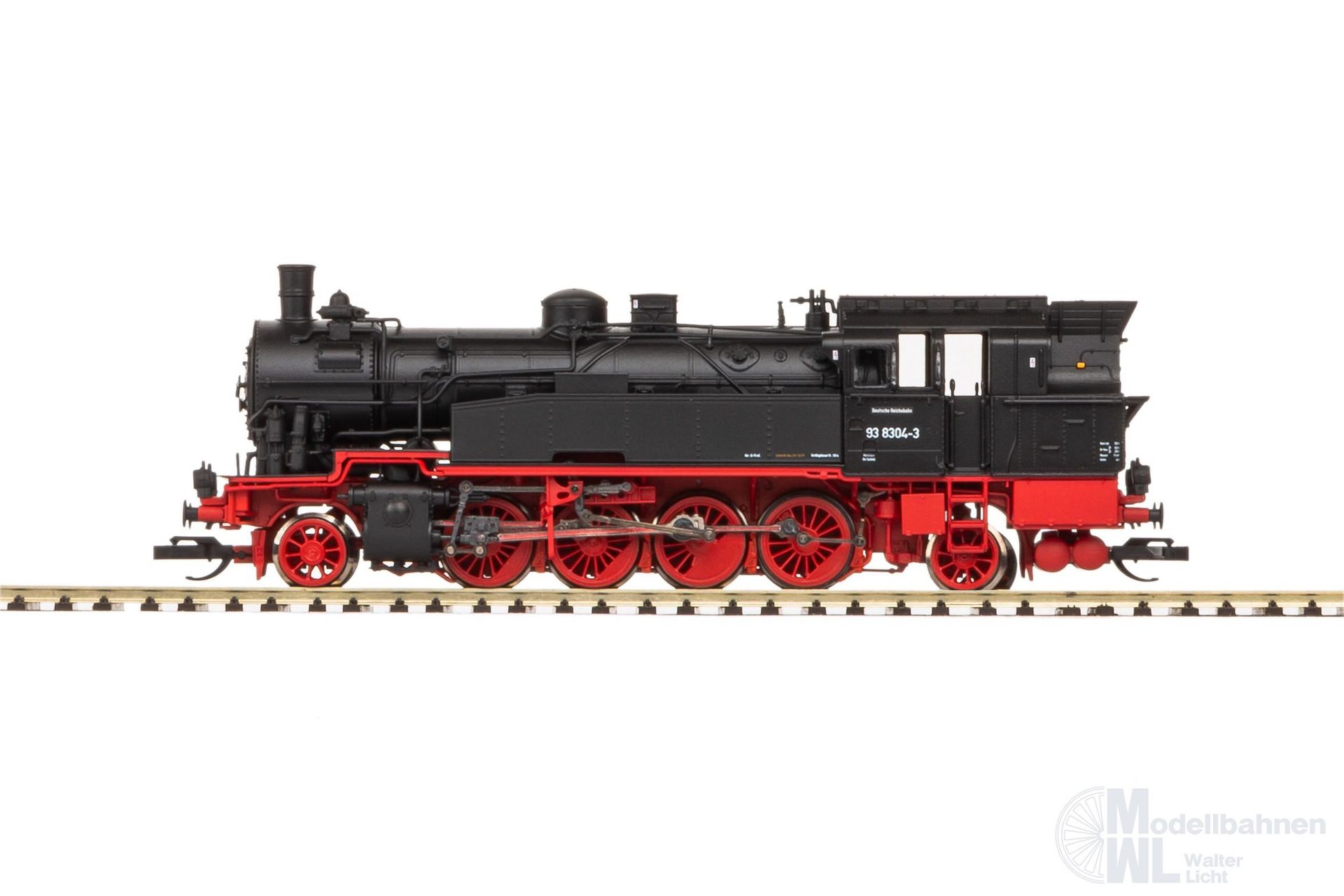 In Preußen war man stets um Rationalisierung bemüht, sodass man in den späten 1910erJahren für die Konstruktion einer neuen Tenderlok auf bewährte Konstruktionsprinzipien zurückgriff. So wurden Teile von Trieb und Laufwerk mit einigen Änderungen von der bewährten G8.1 übernommen. Die neuen Lokomotiven wurden als Reihe T14 eingegliedert. Insgesamt wurden 457 Exemplare für die Preußische Staatsbahn gebaut. Anschließend bestellten auch die Reichseisenbahnen in ElsassLothringen 40 Loks dieses Typs. Nach dem Zweiten Weltkrieg war die Gattung 93.0–4 über Europa verstreut. Frisch instand gesetzt kam sie neben dem geteilten Deutschland auch in Polen, Belgien und Österreich wieder zum Einsatz. Die DB setzte ihre Maschinen bis 1960 ein, wobei das Bw Limburg und die Strecken zwischen Lahn, Dill und Sieg ihr letztes Refugium waren. Bei der DR währte der Einsatz noch bis 1971, hier kamen die Loks besonders in und um Berlin vor allem vor Güterzügen in Fahrt. Das Modell verfügt über TT Kurzkupplungen! Bahnverwaltung: DR Epoche: IV Länge über Puffer: 115 mm Mindestradius: 310 mm Digital Schnittstelle: NEM 662 Next18 Haftreifen: 2 Kupplung: mit TT Kurzkupplung Lichtwechsel: Fahrtrichtungsabhängiger Lichtwechsel weiß / rot Digital schaltbare Führerstandsbeleuchtung