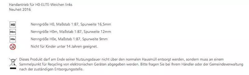Eigenschaften "Tillig 85531 - Handantrieb für H0-ELITE-Weiche links H0/GL"