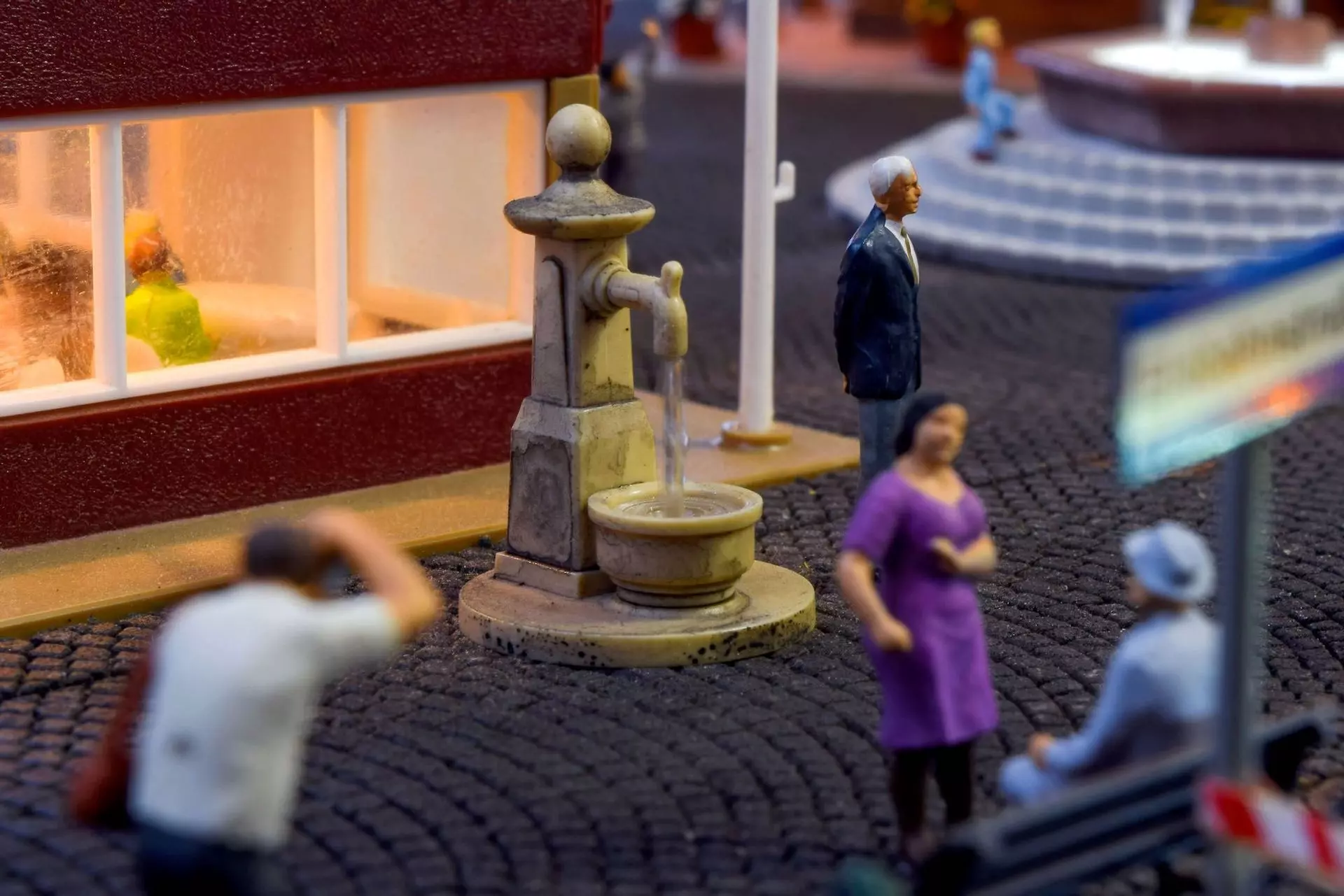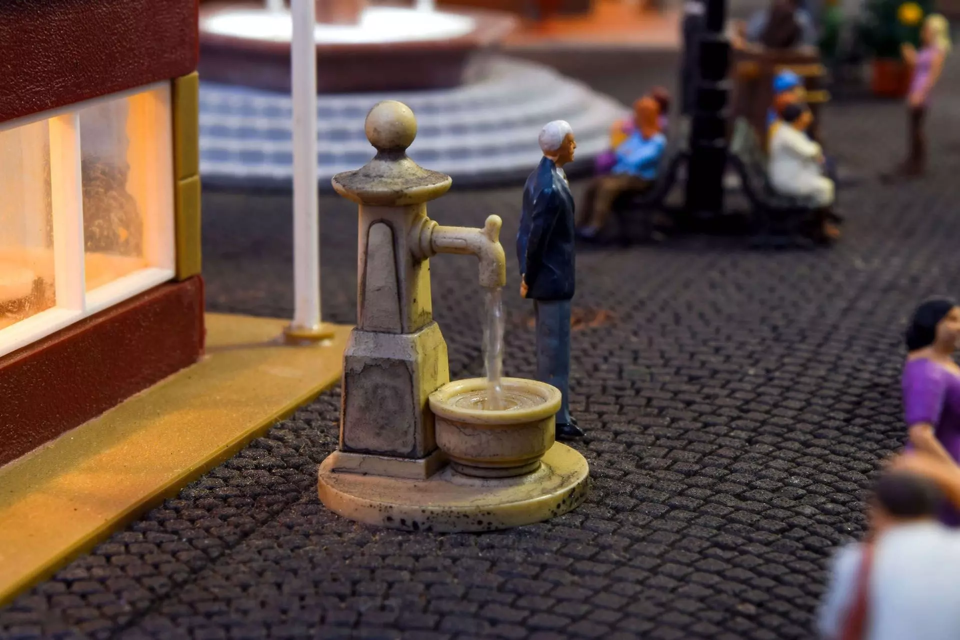 Täuschend echter Brunnen, jedoch ohne Wasser. Ein fließender Wasserstrahl wird durch ein sich drehendes Acrylglas-Element simuliert. Mit Unterflur-Antrieb. Höhe: 3,2 cm. Einbautiefe: 42 mm.