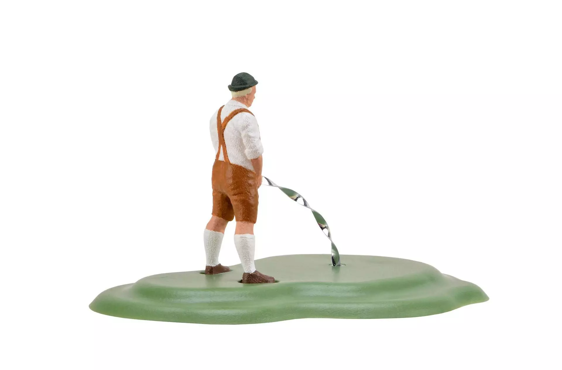 Wer steht denn da hinter dem Busch? Erwischt! Eine Figur aus der Reihe Bewegte Welt mit realistischen Bedürfnissen. Ein fließender Wasserstrahl wird durch ein sich drehendes Acrylglas-Element simuliert. Mit Unterflur-Antrieb. Einbautiefe: 45 mm.