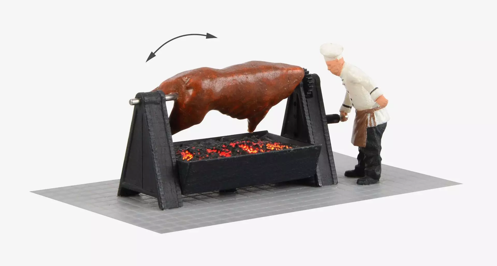 Viessmann 1552 - Grill mit drehendem Ochsen und leuchtender Glut H0 1:87