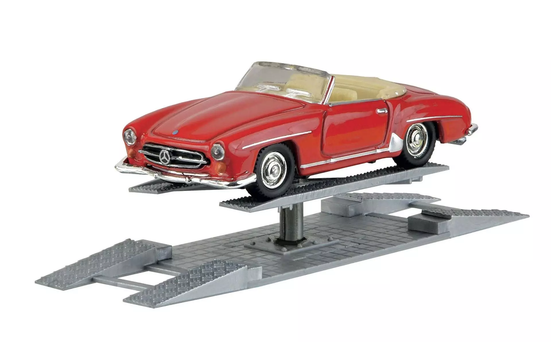 Ein-Säulen-Hebebühne mit Bewegung zur realistischen Ausstattung von Autowerkstätten, Betriebshöfen usw. Der integrierte Digitaldecoder ist multiprotokollfähig und versteht die Formate DCC und MM. Außerdem verfügt das Modell über ein zufallsgesteuertes Schauprogramm (Diorama-Modus). Mit Unterflur-Antrieb. Einbautiefe: 50 mm. Maße: L 6,8 x B 2,0 x H 0,4 – 2,2 cm. Passt perfekt zum ARAL Tankstelle Vollmer Art. 45156, kibri Art. 38541 und der Viessmann Figur Art. 1538 Schweißer mit Schweißlicht.